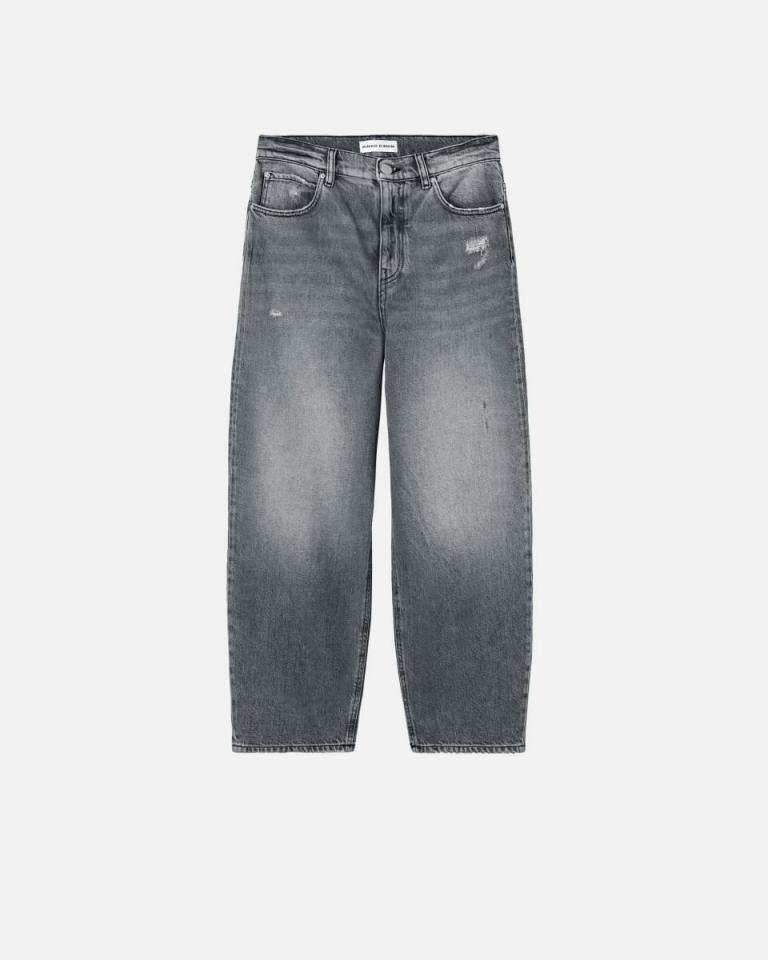 ESTELLE EGG − 103857A20TPJS Dżinsy z pięcioma kieszeniami o charakterystycznym kroju egg-fit, z lekko zaokrągloną po bokach nogawką, uszyte z denimu spieranego na kolor iced grey. Niski stan zapewniający swobodny fason, nogawki o regularnej linii, ani zbyt obcisłe, ani szerokie, z lekkimi przetarciami na przodzie. Zapięcie na zamek i nabijany metalowy guzik.