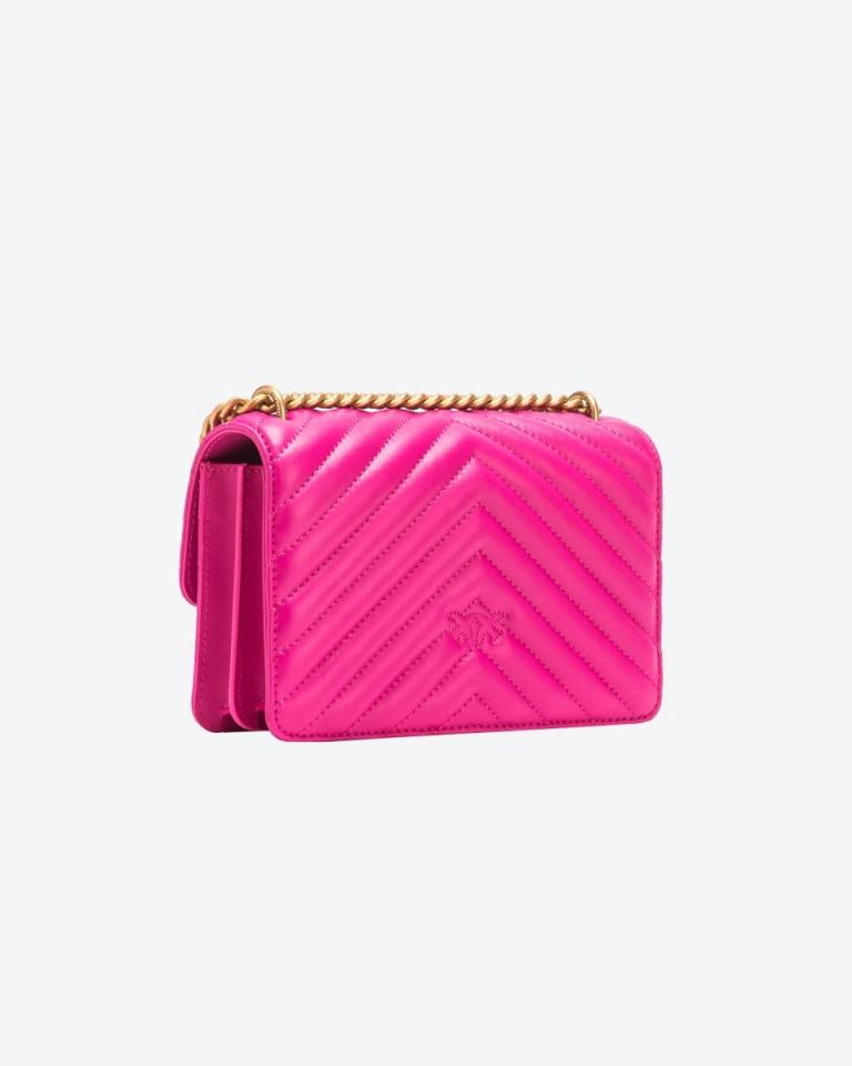 TOREBKA LOVE ONE MINI DC − 100074A0GKN17Q00001 Torebka Mini Love Bag One wykonana z pikowanej skóry nappa z motywem chevron. Zapięcie uzupełniono kultową metalową klamrą Love Birds Diamond Cut. Wnętrze wykończone jest podszewką z zamszowej mikrofibry i posiada przegródkę na zamek oraz płaską kieszonkę ze skóry. Pasek na ramię łączy klasyczny okrągły łańcuszek z praktycznym regulowanym naramiennikiem ze skóry.